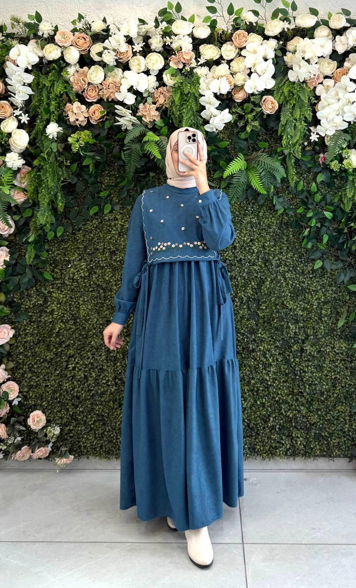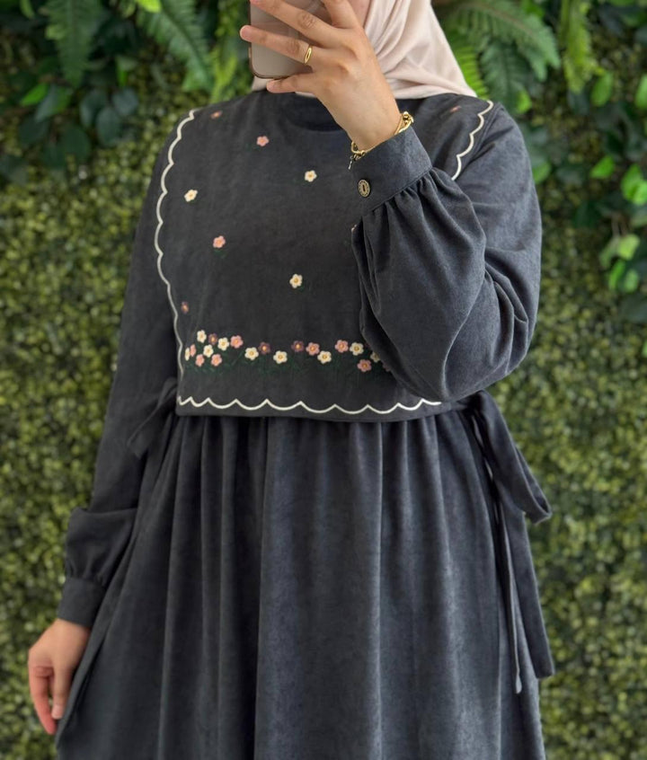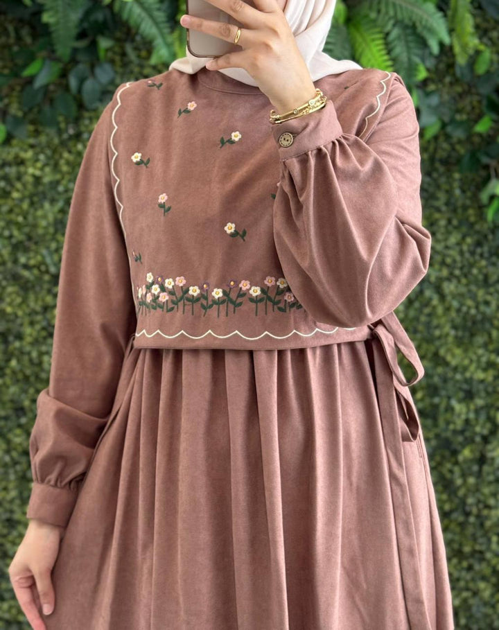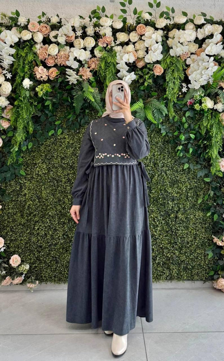 فستان قماش شمواه مع فزت ورود